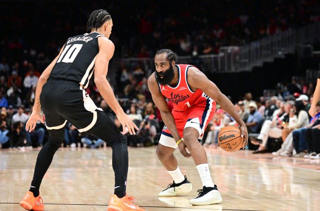 当然不能指望哈登防守端还要承担责任,但还有一个数据引人深思:上赛季哈登和伦纳德同时在场时,快船百回合能赢对手14.7分,特别是全明星周末过后,快船的净效率值是联盟前三!但本赛季哈登和伦纳德同时在场时,快船百回合输对手5.0分,大致等于球队净效率值(-5.3)。打热火第四节被弃用,当球队在小卡带领下疯狂追分时,哈登眼神空洞陷入沉思,没再关注球场动态。那一幕很容易让人联想起哈登在篮网效力时最后两周的情况,心不在焉,效率大幅下滑,缺乏斗志,这绝对不是哈登的比赛风格。