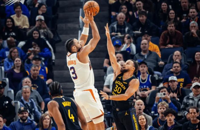 勇士复仇太阳!格林遭驱逐,库里19中9,终结3连败,布克空砍38+5